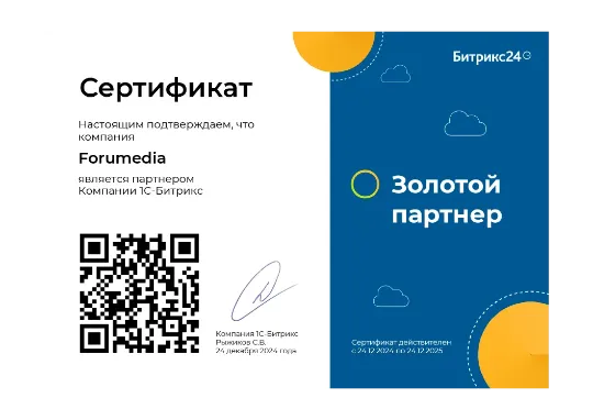 Золотым сертифицированным партнером Битрикс24.